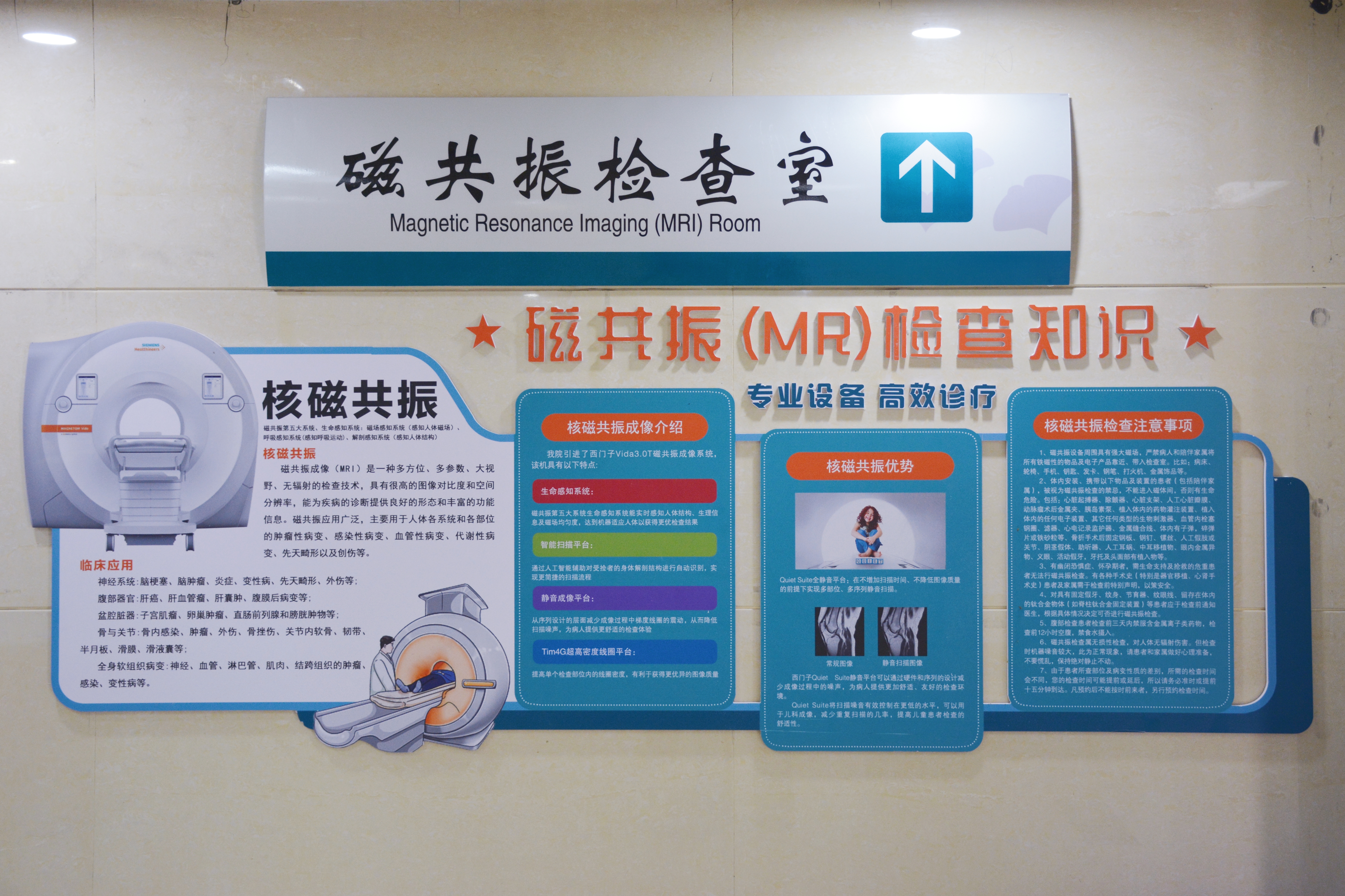 该设备搭载BioMatrix生命矩阵系统,颠覆传统磁共振检查模式,实现以患者为中心的全智能扫描:实时感知呼吸、心跳、解剖结构及磁场变化,动态自动调整扫描参数与方案,无需患者刻意屏气、配合,即可完成个性化精准成像;智能匀场优化技术,有效解决肥胖、特殊体型患者成像畸变问题,让每一幅影像都清晰无伪影,真正做到 “读懂患者、精准适配”。 二、核心技术全面突破 1.极速高清,捕捉微小病灶 依托深度学习重建算法与极速动态增强技术,实现2秒一期动态成像,精准捕捉病变强化瞬间,轻松检出毫米级微小病灶,判断病灶性质与血供特点;超高清成像平台突破传统分辨率限制,全身大范围肿瘤筛查、神经功能成像、心脏精准评估、腹部肿瘤早筛等前沿项目全面开展,成为肿瘤早期筛查、良恶性鉴别、转移灶定位的 “火眼金睛”。 2.全静音大孔径,检查体验全面升级 配备Quiet Suite超静音平台,噪声降低70%-99%,告别传统轰鸣;70cm超大检查孔径,为体型偏大、幽闭恐惧患者提供开阔空间,缓解紧张与不适。同时,磁共振零电离辐射,对儿童、孕妇、需反复检查的慢性病患者及重症人群安全友好。 3.自由呼吸成像,特殊人群无忧检查 创新自由呼吸成像技术,无需佩戴呼吸门控,重症患者、老人、儿童等无法配合屏气的人群,均可顺利完成腹部、心脏等部位检查;心脏成像可在自由心跳、自由呼吸状态下,一个心动周期完成采集,无创无辐射,为冠心病、心肌病等心脏疾病提供精准评估手段。 三、临床应用全覆盖 1.神经系统:精准诊断脑肿瘤、急性卒中、脑白质病变、退行性疾病,清晰显示微小病灶、神经纤维束,助力超早期脑梗识别与精准治疗规划。 2.骨关节系统:高清呈现软骨、韧带、半月板、肌腱细微损伤,为运动损伤、关节疾病、骨科手术提供精准影像依据。 3.体部肿瘤与血管:实现肝、肾、前列腺、乳腺等器官肿瘤早期筛查、精准分期、疗效评估;全身弥散类PET成像,无辐射完成肿瘤全身转移筛查与疗效监测。 四、检查禁忌提醒 1.体内装有心脏起搏器、神经刺激器、胰岛素泵、电子耳蜗,或金属假肢、金属关节、眼内金属异物等; 2.妊娠3个月内早期妊娠女性; 3.病情危重、依赖呼吸机 / 监护仪等生命支持设备者; 4.严重幽闭恐惧症、癫痫发作期、无法保持静止者。 此次西门子 MAGNETOM Vida 3.0T磁共振的启用,不仅大幅提升我院影像科核心诊疗能力,推动多学科协同发展,更为县域高端医学研究与精准医疗落地提供硬核支撑。我院将以此为契机,强化技术培训、优化检查流程,充分发挥高端设备价值,让优质医疗资源真正惠及群众,实现精准诊断与人文关怀的深度融合。