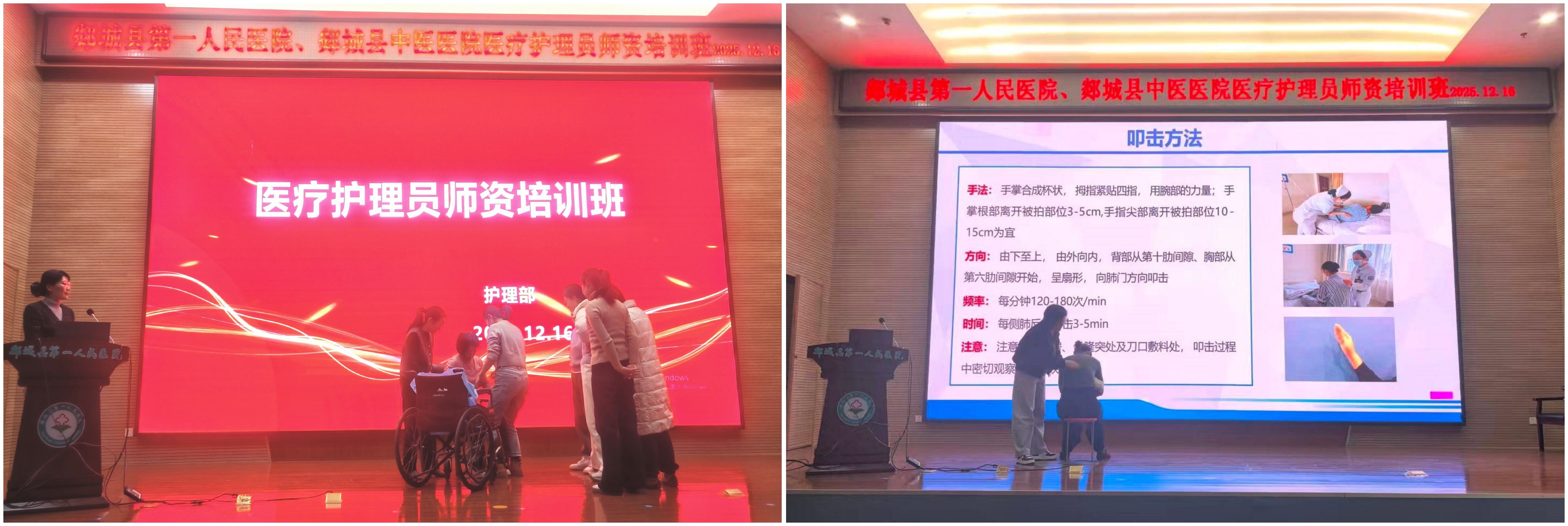 为强化培训实效,确保参训人员真正掌握核心操作技能,培训特别设置了实操展示环节。大家积极参与,现场模拟演示了叩背排痰、雾化吸入、轮椅转移等关键操作,授课老师针对展示情况进行了精准点评与细节指导,有效提升了培训效果。